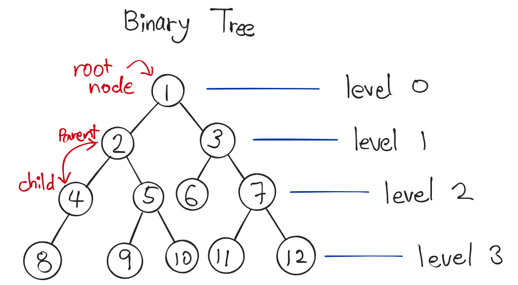 루트 노드를 중심으로 모든 노드는 최대 두개의 자식 노드로 나뉘어진다. 자식 노드가 없는 노드는 리프 노드 또는 터미널 노드라 불린다.
