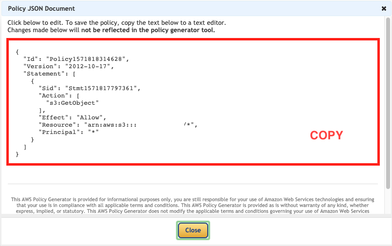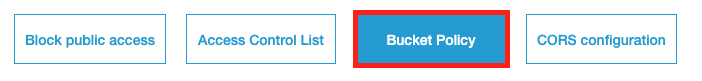 저장되면 다음 Bucket Policy 로 이동해서 Policy 를 만들어준다.