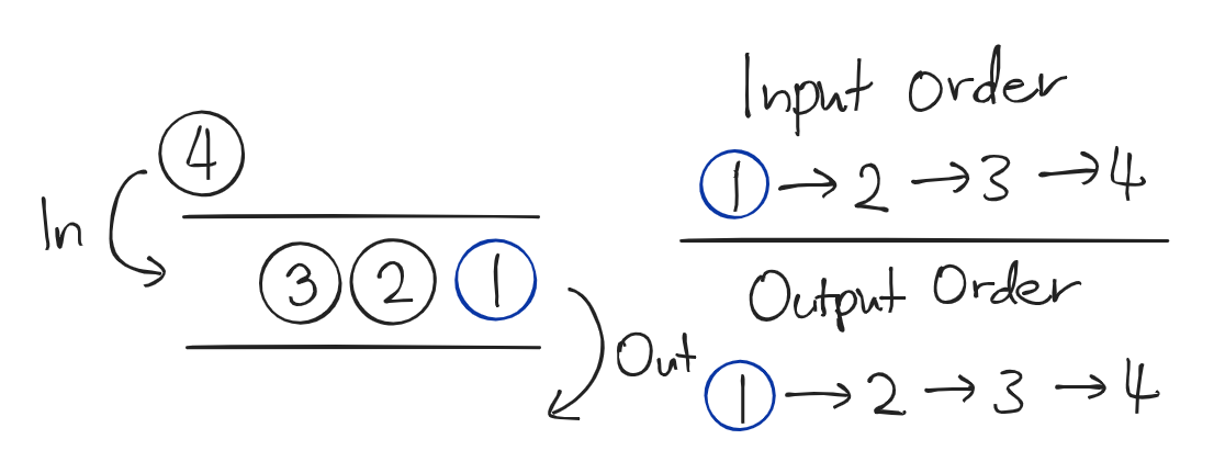 먼저 넣은 데이터가 먼저 나오는 FIFO(First In First Out) 구조 형식