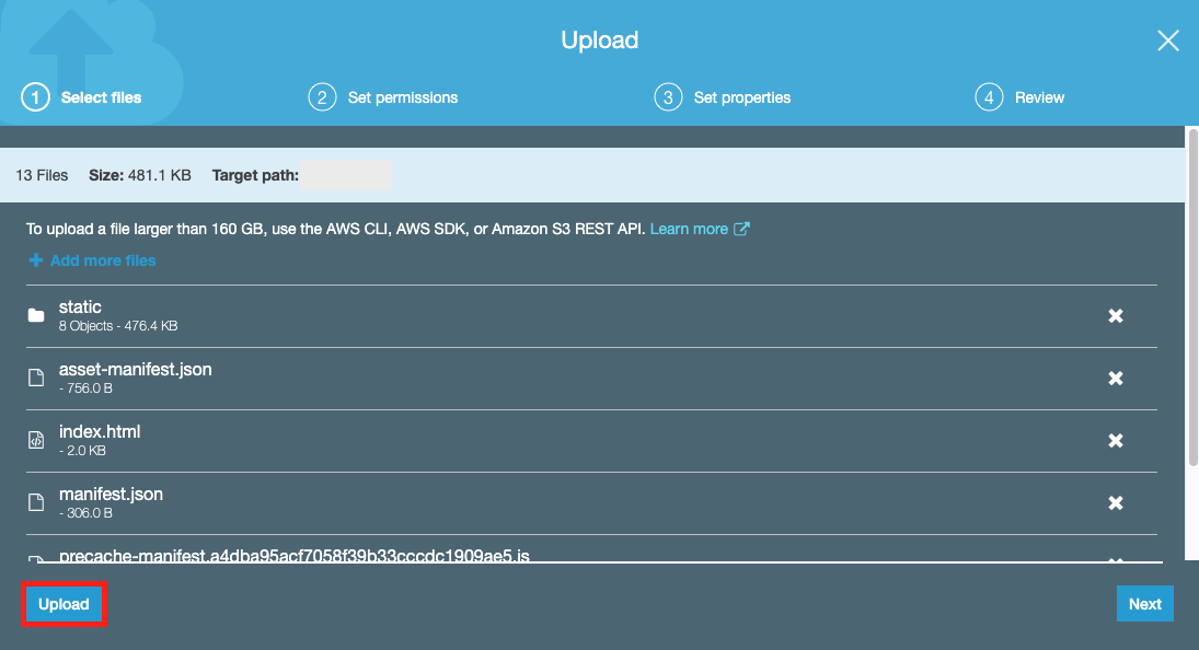 이제 마지막이다. 상단의 Overview 탭으로 가서 아까 생성했던 build 폴더에 있는 모든 파일을 드래그애서 업로드하자.