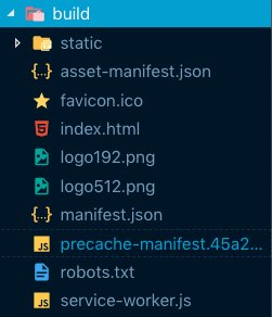 React app 을 만들고 build 해주면 build 폴더가 생성되고 그 안에 static 폴더와 index.html 을 포함해 필요한 파일들이 생성된다.